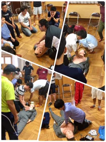続いて、AEDやダミーを使って一人一人実技指導を受けました。