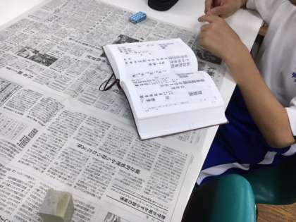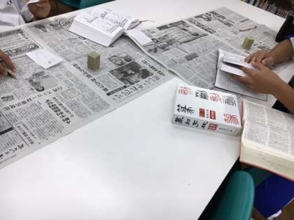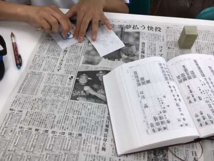 今日は、篆刻教室です。篆刻辞林を使用して、字体を選ぶところから始めています。印にするための字の形は面白いなぁ。