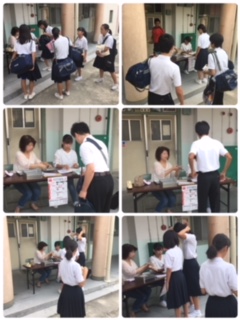 まだ、残暑も厳しい折ですが、PTA役員の方々のご協力をいただき受付をお願いしています。