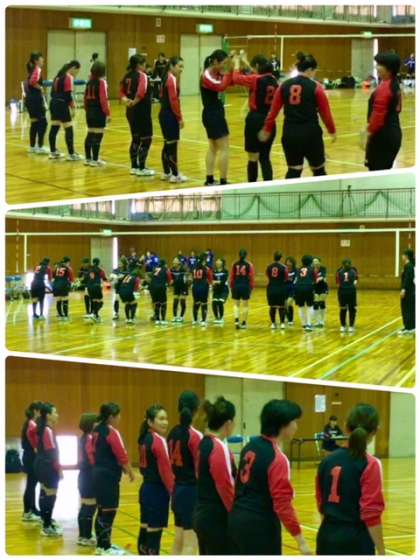 第1セットが終わりました。第1セットは淀中学校PTAバレーボール部が取りました。次も頑張れ!