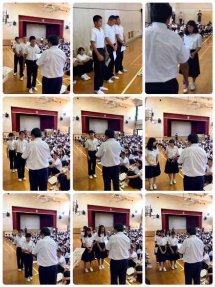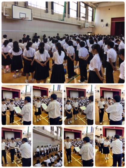 月曜日は全校集会です。今日は夏休み中に戴いた表彰状の疲労・伝達を行いました。