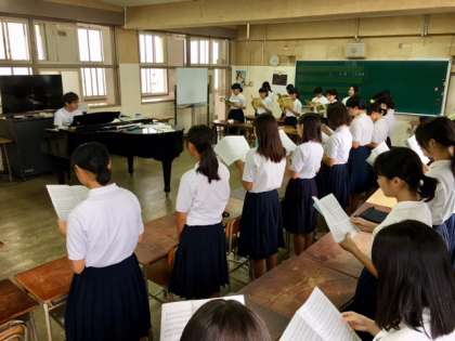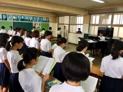早朝から、音楽室から校庭に、爽やかな歌声が響いています。
