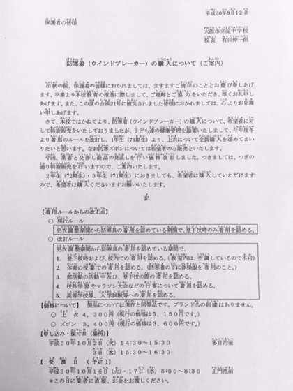 生徒を通じて、ご案内のお手紙を配付しています。下の学校日記の青い文字をクリックしていただくと、文書をご覧いただけます。よろしくお願いいたします。
