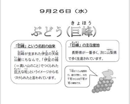 ふたたび、秋の味覚「ぶどう(巨峰)」の登場です。楽しみですね〜。