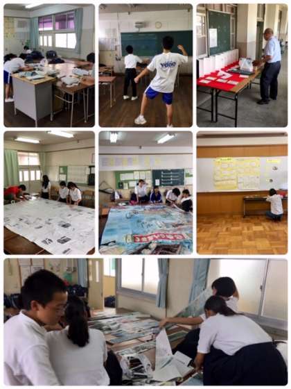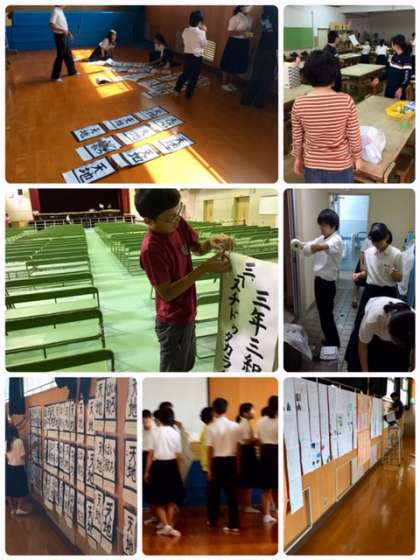 天気も順調に回復してきました。明日は文化祭、この日を楽しみに力をあわせて準備してきました。午後の時間は係生徒たちが準備にかかっています。