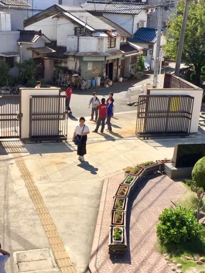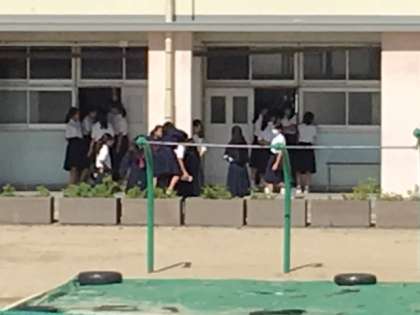 登校時刻となりました。生徒たちの明るい声が校舎にこだまします。