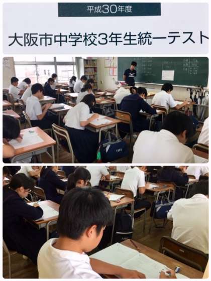 本日「大阪市中学校3年生統一テスト」です。3年生はおとといに実力テスト、来週は中間テストと真剣勝負が続きます。