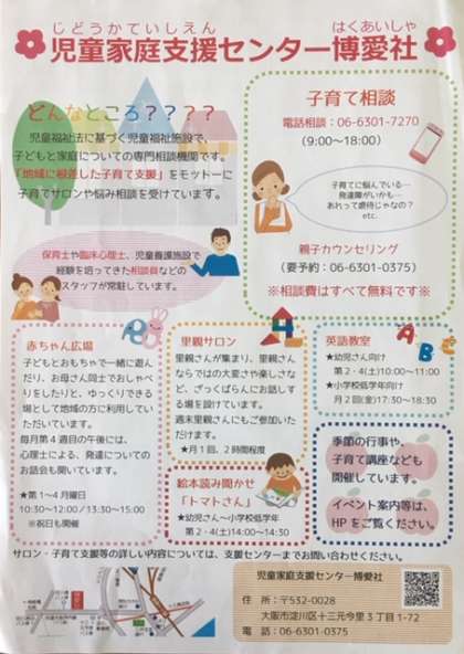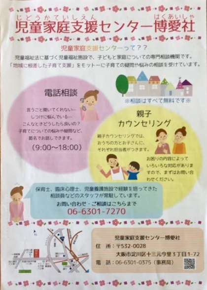 お問い合わせ・相談は06-6310-7272児童家庭支援センター博愛社までお電話ください。