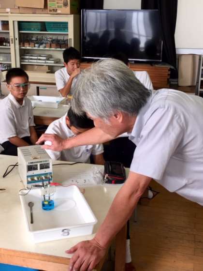 理科の実験です。実験を行っています。
