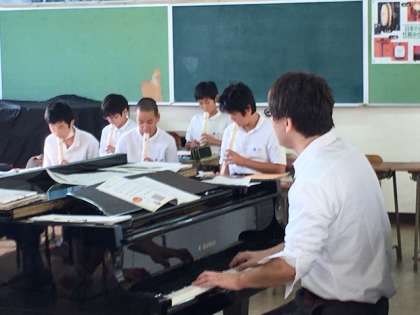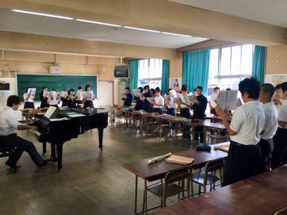音楽の授業です。アルトリコーダーや合唱を練習しています。