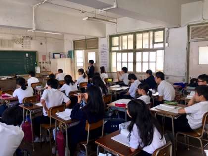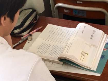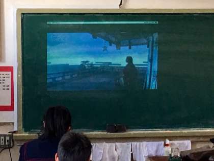 国語の授業です。「枕草子・徒然草」をICTを活用しての授業です。