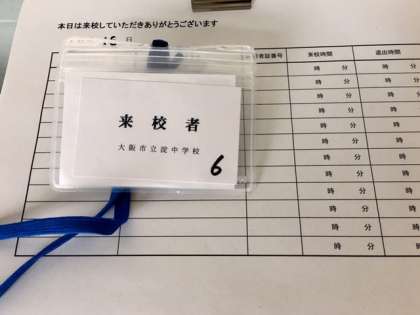 名簿にご記入いただき「来校者証」を首から下げていただき、ご自由にご覧ください。
