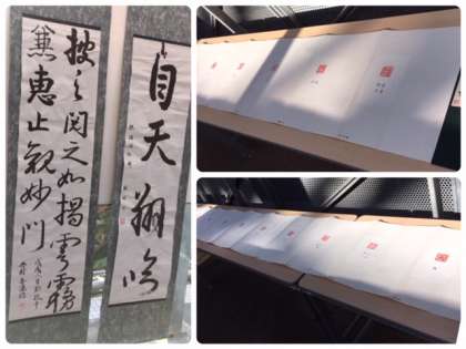 咲くやこの花館にて総合文化祭の展示会が開催されています。淀中学校では、ドリームのメンバーが出展しました。書作品9点と篆刻作品7点と、全員で作った折帖です。夏休みに一生懸命練習をしました。会期は28日までです。ぜひお越し下さい。