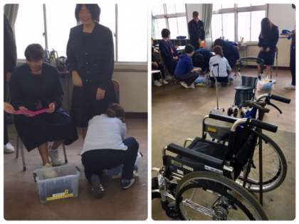 フェリス大和田から介護士さんについてお話をを聞かせていただきました。話だけでなく、色々な器具もお持ちくださり、体験を中心に講座を開いてくださいました。生徒からはとてもわかりやすかったと感想が寄せられてました。