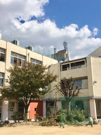 今日から、大阪市立校園営繕園芸事務所の方々に来ていただいて、学校内の高木を中心とした剪定作業をしていただきます。