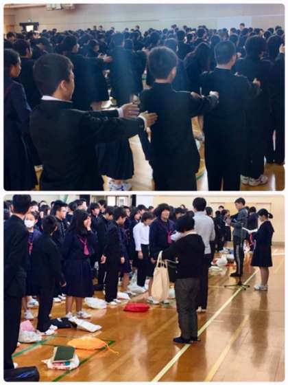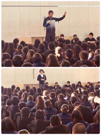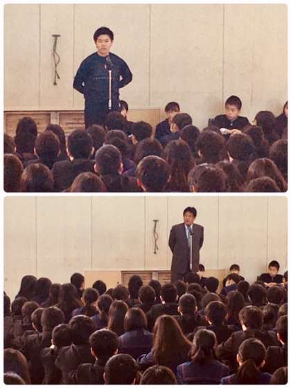 校長先生からは、進路についてでした。3年生は今日から進路懇談会がありますが、3年生はもとより、1年生、2年生も今から高校見学会、オープンスクールなどに参加して、積極的に自身の将来を考えて欲しいと話されました。