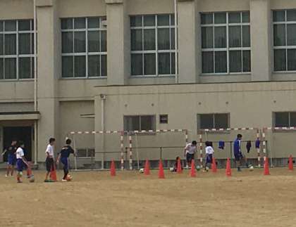 今朝、部活動に励む生徒の声に元気をもらいました。グラウンドではサッカー部が、体育館ではバレーボール部が朝練をしていました。