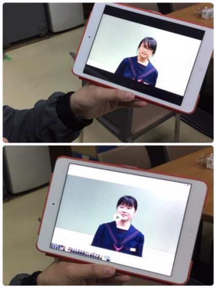 英語部員は、iPadにワンポイントアドバイスを撮影して小学校にお渡しします。