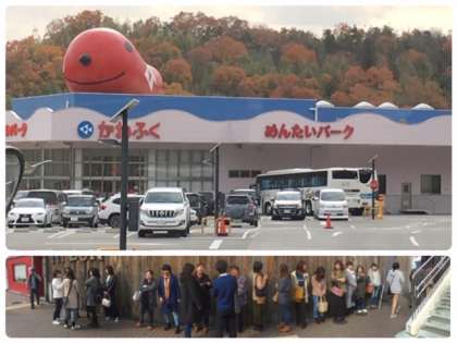 明太子の説明を受けて、工場の案内をしました。見学後は、即売所でお土産を買いました。