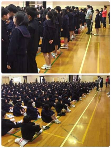 雨の朝を迎えました。月曜日は全校集会ではじまります。