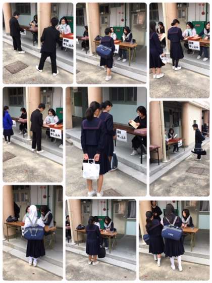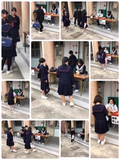 今朝もPTA役員の皆様に、今年度最後の第3回 漢検・英検の申し込み受付をしていただきました。朝早くからありがとうございます。
