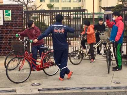 おはようございます。今朝は生活指導部の先生方が校区内を自転車で巡回して登校指導をしてくださいます。