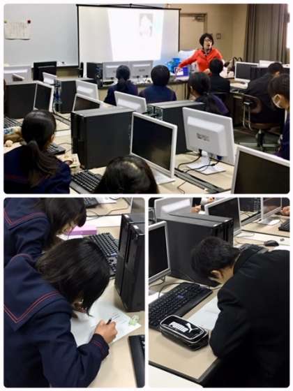 本来なら、教室でタブレットパソコンを使いたいのですが、タブレットが不安定なので、パソコン室で授業を行います。