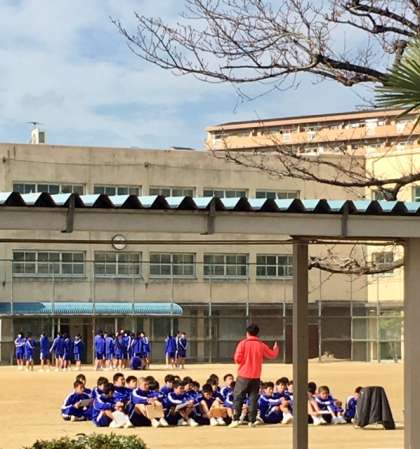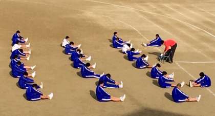 グラウンドでは、体育の授業が行われています。平年並みに気温が下がってきましたが、生徒は元気いっぱいです。