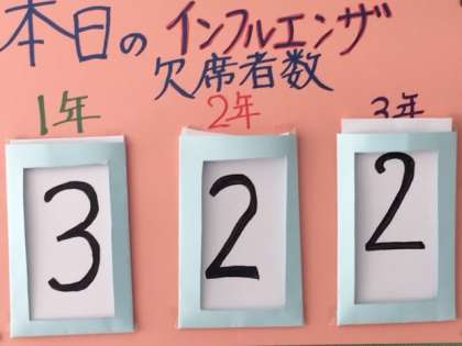 本日のインフルエンザ罹患者数です。少しずつですがインフルエンザに罹患している生徒が増えてきました。明日からはお休みが続きます。しっかり栄養と休養をとって体調を整えてください。