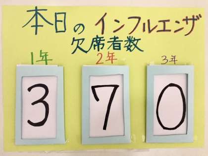 2年生で、インフルエンザに罹患している生徒が増えてきました。かぜ様症状があったら(特に急な発熱)かかりつけ医に診察してもらってください。