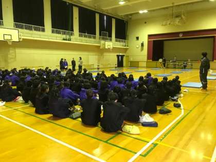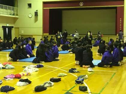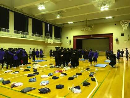国語係を中心に準備を進めてきました。注意事項を聞いて、全員が場につきました。円陣を組んで、気合いを入れているクラスもあります。