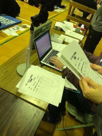 パソコンを使って集計中です。場の移動のときに、もう少し速やかにできればいいですね。