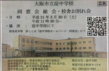 詳細は随時、淀中学校ホームページ「同窓会・校舎お別れ会」のコーナーでお知らせいたします。