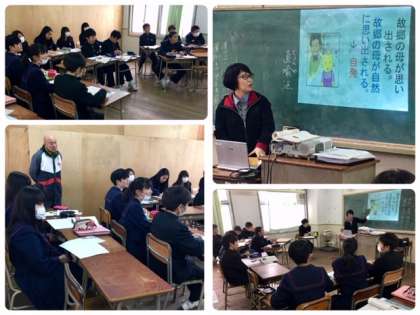 2年生の授業の様子です。国語の授業も1クラスを2つに分けて少人数で授業を受けています。どの教科に関わらず、ICT活用が進んでいます。