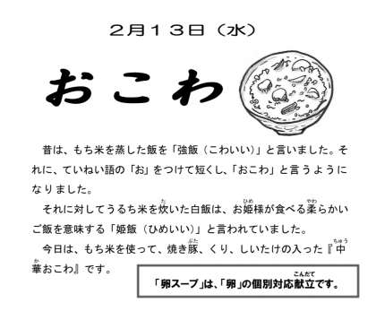 2月13日 今日の給食