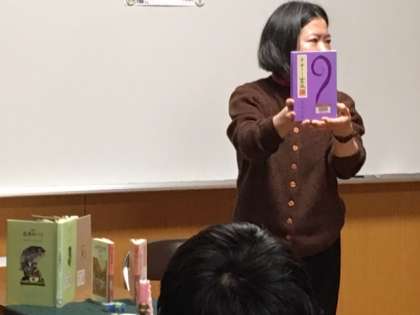 最初に「だれか」という詩の朗読があり。ロウソクに火を灯し、お話の世界に入っていきました。今日のお話は、「ボタンインコ」「舌切り雀」「絶望の濁点」でした。