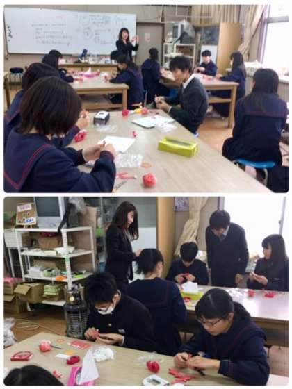 5班は「カンタンおもちゃづくり」です。講師は好文学園女子高等学校の古川久美子 先生です。