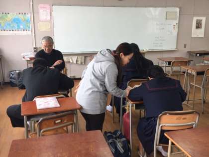 グローバル教室の学習です。今年度、最後の教室となりました。生徒の皆さんも学習に頑張っています。卒業した3年生も通って学習しています。