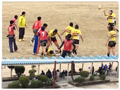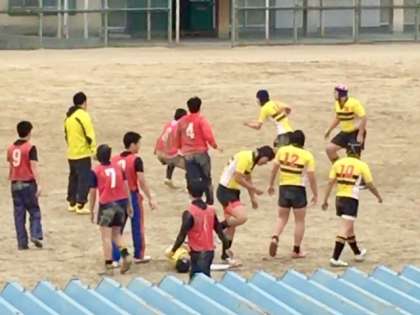 午後のグラウンドでは、ラグビー部が引退試合をしていました。