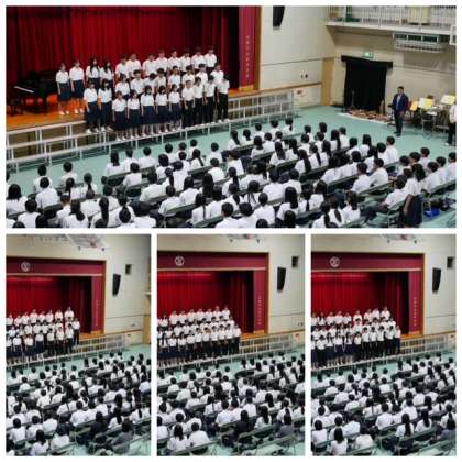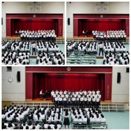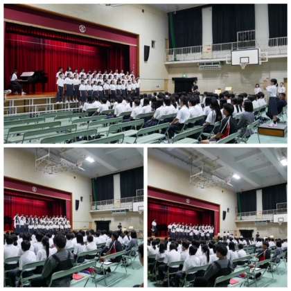全学年の合唱コンクールです。声の響き。ハーモニー。表現の工夫。どのクラスの歌声も心に届く素敵な歌声です。合唱コンクールなので金銀銅の順位はつきましたが甲乙つけがたい。全クラスに金賞をあげたい。そう思わせる合唱だったと思います。ありがとうと伝えたいです。