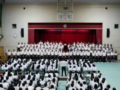 3年生の全体合唱は感動しました。これだけの人数の歌声が美しくそろって響くと、歌のもつ力、音楽の力に圧倒される思いです。素晴らしい合唱でした。3年生の思いと力を感じました。ありがとう。