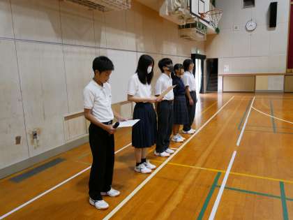 今日から全校集会の司会は新生徒会役員のみんなです。フレッシュな意気込みでリーダーとしてさまざまなことにチャレンジしてください。活躍を楽しみにしています。