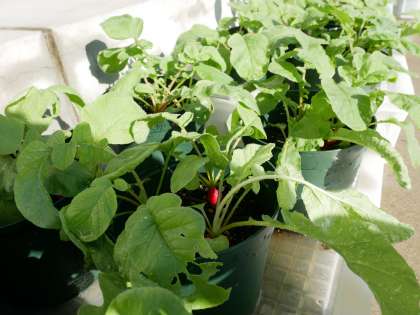 正門を入ってすぐ右の鯉が泳ぐ池があるほとりに、2年生が技術の授業で育てているラディッシュがあります。丁寧に水やりをつづけているようすをこれまで見てきましたが、今日、その育ち具合を観察してみると葉は生き生きと広がり根元にはラディッシュが立派に大きくなっていました。美味しそうです。収穫後、ぜひ調理して食べてほしいと思いました。