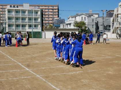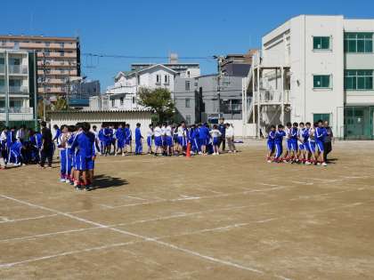 10/31(金)の体育大会まであと1週間あまり。それぞれの学年練習にも力が入ってきました。2年生は2限に開会式・閉会式等の全体行動練習をした後、3限には学年種目の練習に取り組んでいました。イチ・ニ、イチ・ニと大きな掛け声。おっ、これは昔からの体育大会の定番種目「むかで競争」です。簡単なようでなかなかタイミングがそろわず、スピードアップするのは難しい。気持ちよく走り抜けられた時の爽快感は大きい。そんな競技。みんな楽しそうに元気に取り組んでいました。
