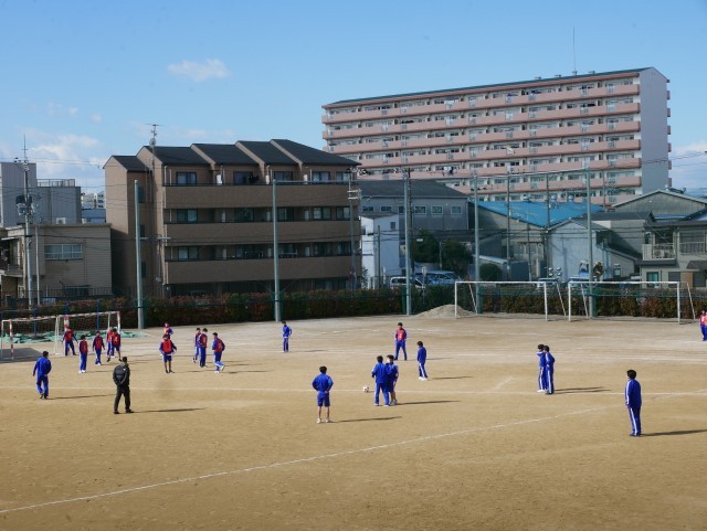 下の写真は、2年生の体育の授業のようすです。グラウンドを駆け回り、元気よくサッカーをプレーしていました。明日は1年生で百人一首大会を予定しています。予定通りに実施できそうで何よりです。