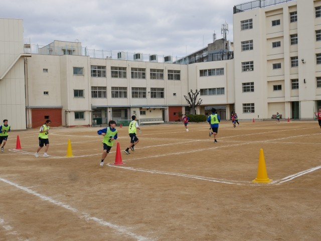 1周の距離を確保するために1年生はジグザグのコースをつくっていました。1周500mとのことです。まずは走るリズムと呼吸のリズムを整え、気持ちを強くして走り続ける。そこからです。みんなに力を出し切ってほしいです。