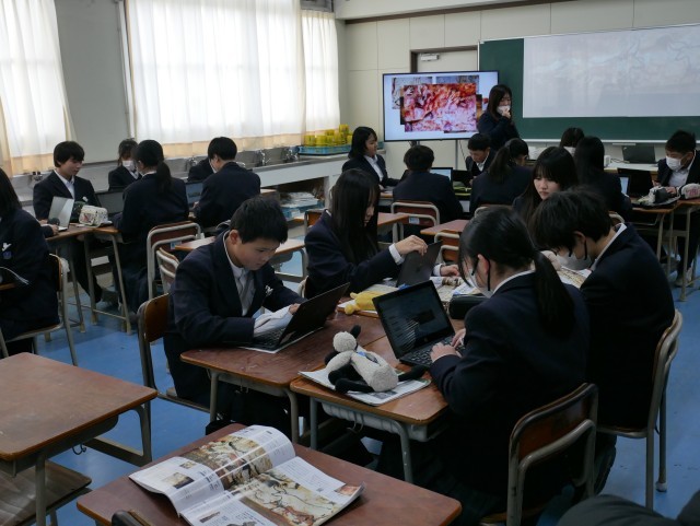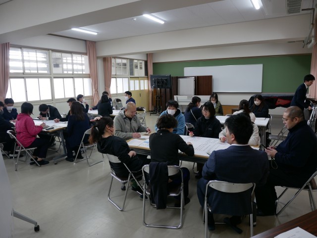 写真は美術の研究授業と教員の研究協議会のようすです。