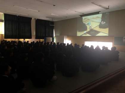1年生は3限目に部活動ビデオを見ました。