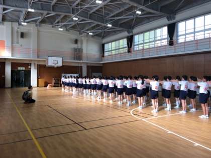 前半と入れ替わって、後半は、1・2組が学校オリエンテーション、3・4組が集団行動の学習を行っています。