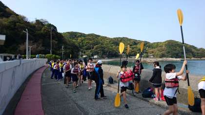 これから、カヌー、カヤックの実習です。天候も海も穏やかです。